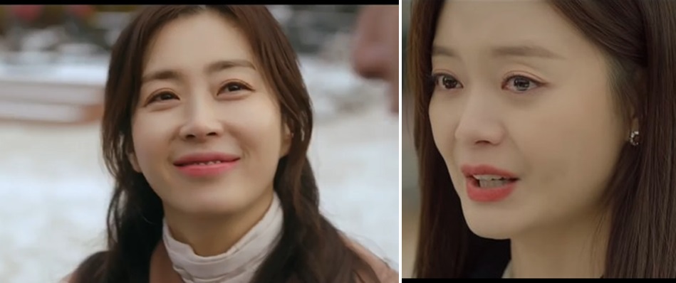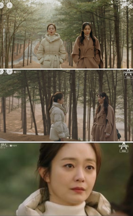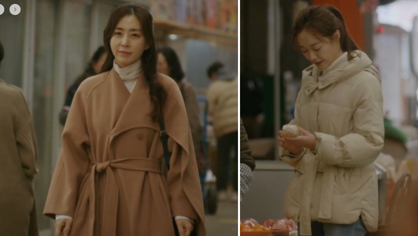 한선주의 갈색 코트, 윤미라의 베이지 패딩을