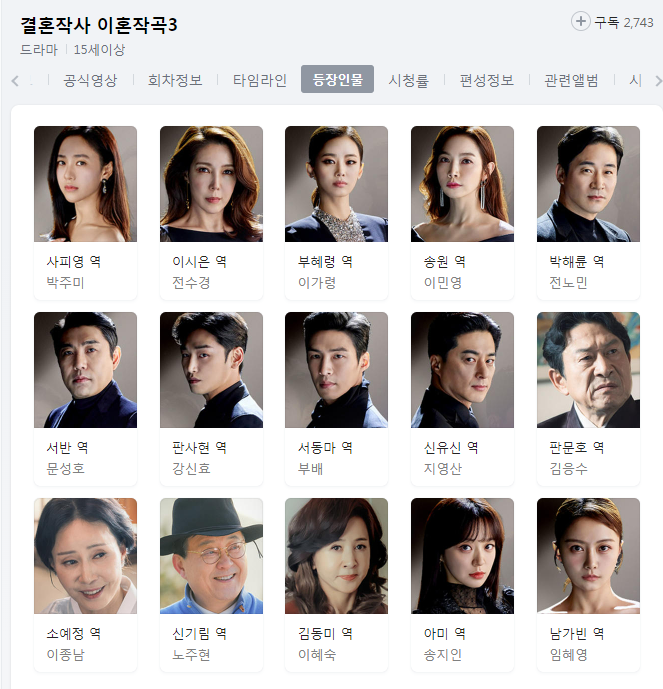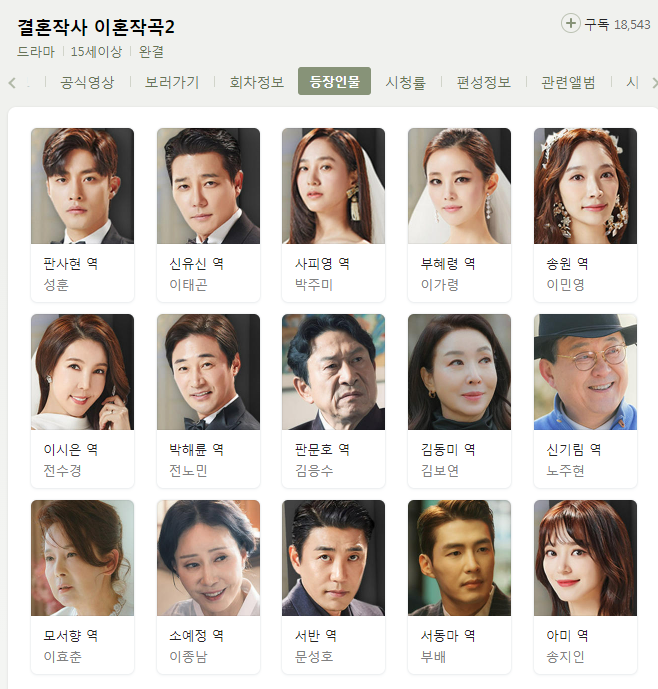 결혼작사 이혼작곡 시즌2의 등장인물을 보면