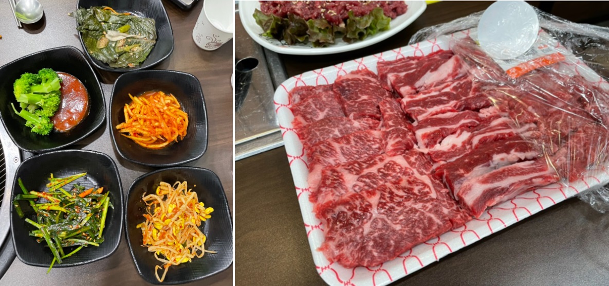한우고기 빛깔이 아주 좋습니다. 기본반찬도