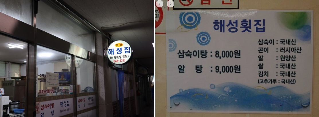 삼숙이탕으로 유명한 식당이 바로 해성횟집이죠.