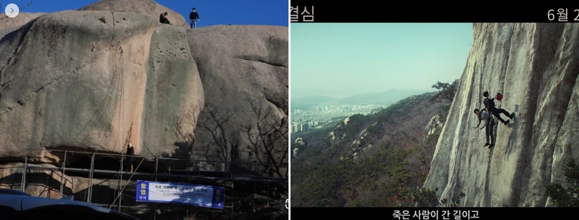 산에 왔었던 장면에서 속초 범바위가 나온것 같다.
