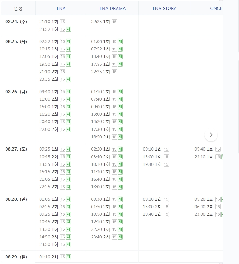 1회 2회 재방송 편성표를 보니