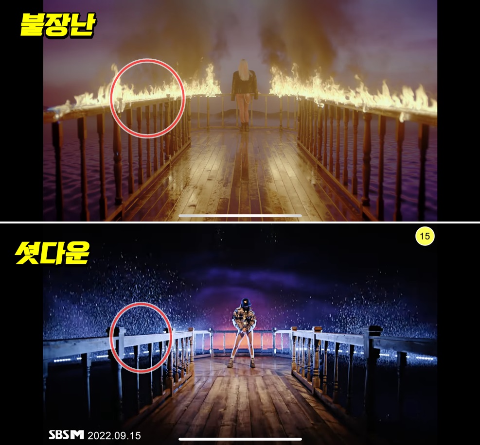 불대신 물이 나오죠. 셧다운 MV도입부에