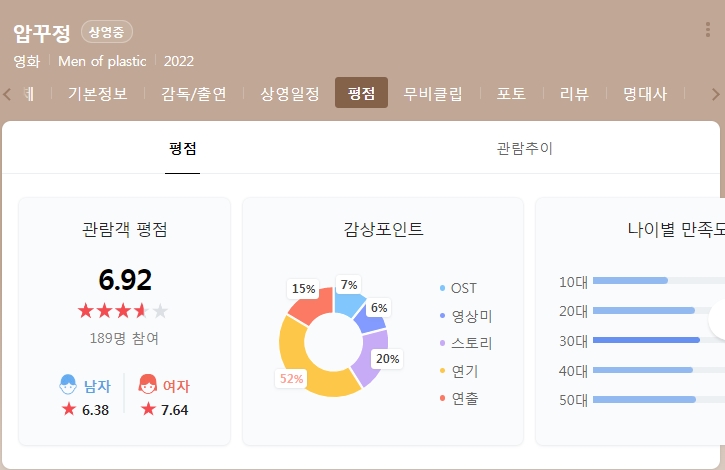 영화 압꾸정을 개봉당일 (11월 30일)보고 나서 바로 네이버 평점을