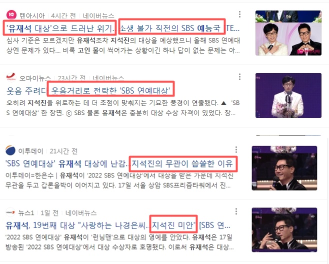 각종 연예뉴스에서 웃음거리가 된 sbs연예대상,
