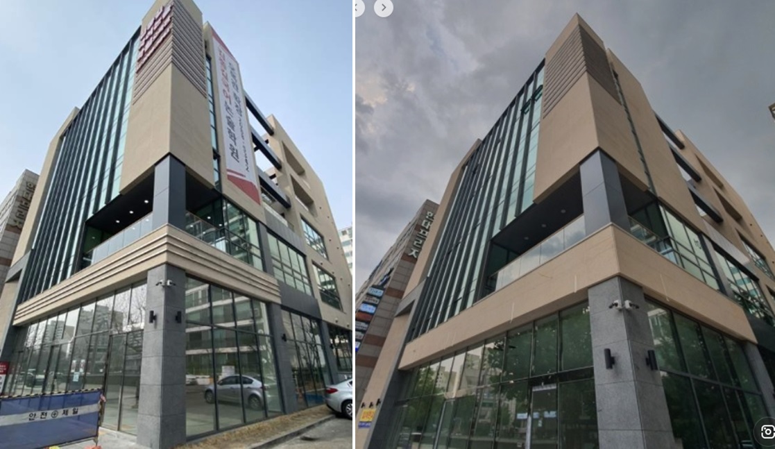 2층은 빨간벽돌, 창문위치 그대로, 간판도