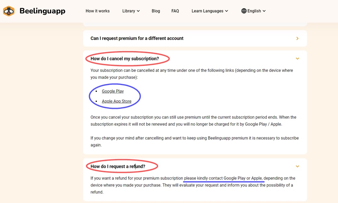 '비링구앱 Beelinguapp 프리미엄 구독 취소방법'