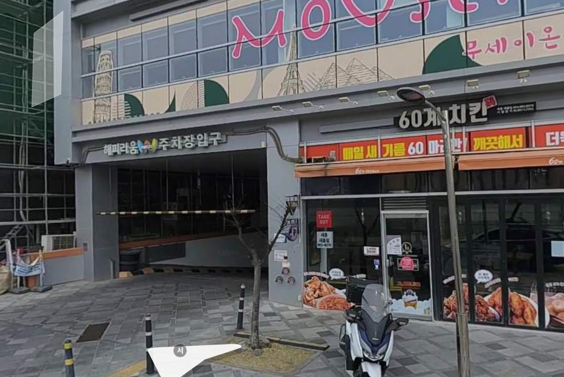 즉 해피라움w 빌딩의 주차장 입구는
