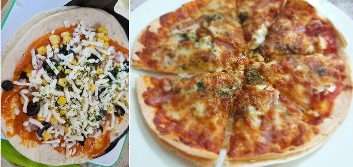 또띠아 피자 위에 루꼴라 올려 먹으면