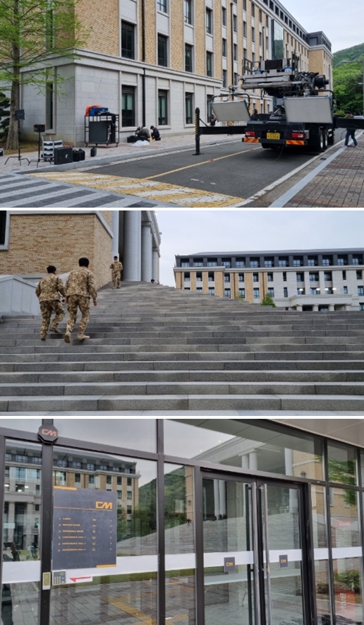 부산외대에서 넷플릭스 택배기사 촬영하는