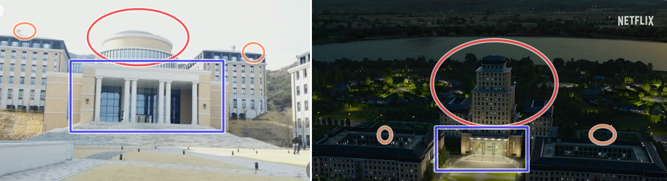 그래픽 CG 돔모양의 건물로 바뀌어 있죠.
