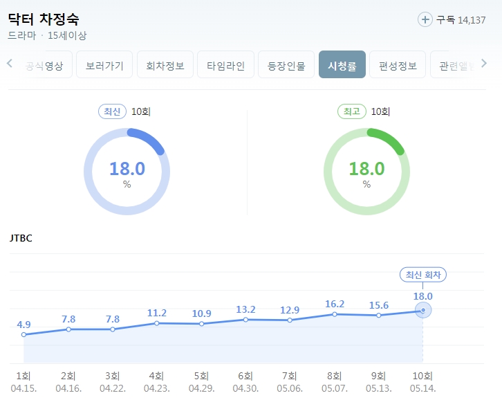 JTBC 닥터차정숙 1위를 뒤로 4위는
