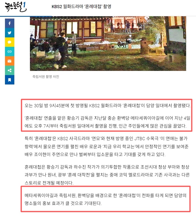 혼례대첩 촬영지를 담양의 다양한 명소에서