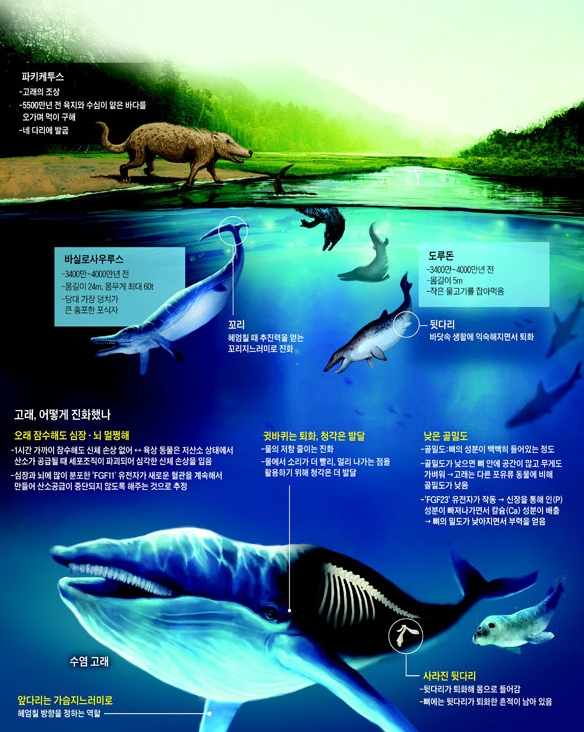 육지에서 살았던 동물이 진화를 하여 바다에서 살다니.