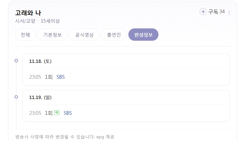 방송시간, 재방송시간, 회차정보, 촬영지 정보에 대한