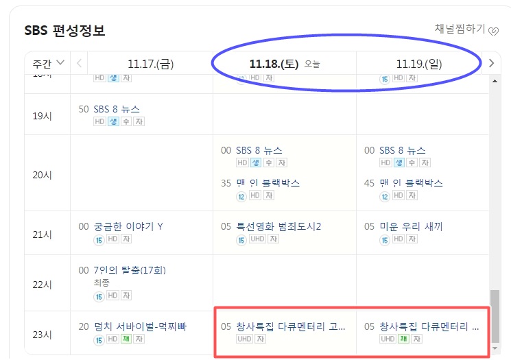 놓쳤다면, 일요일 오후 11시 5분에 보면 된다.