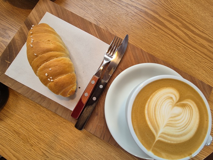 드디어 주문한 빵과 커피가 나왔어요.