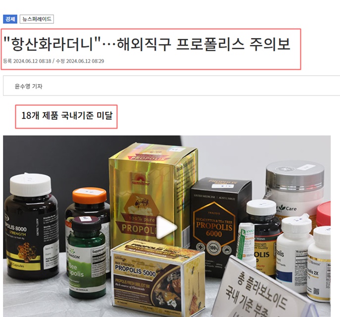 어제 9시 뉴스를 보니, 해외 직구 프로폴리스 제품 중