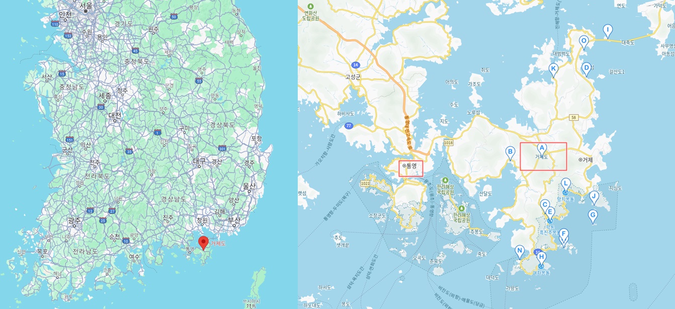 더 아래로 이동하여 경남 거제도 여행하는 모습을