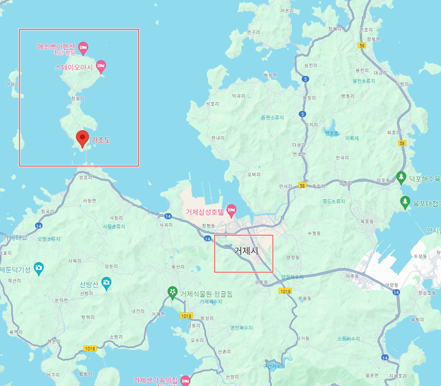 엄마 단둘이 여행 갈래 거제 가조도 민박어항 지도상 위치