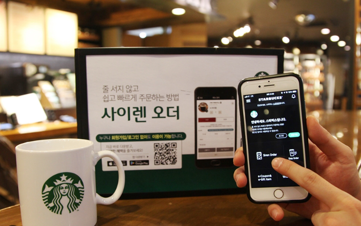 사이렌 오더 뜻은 스타벅스 앱에서 매장에 도착하기 전에 미리 주문.결제하고 매장에서 번호표만 확인해 음료를 픽업하는 모바일 주문